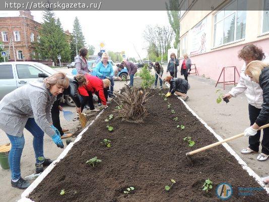 Сегодня более 30 сотрудников ЦСЗН Аткарского района вышли на субботник по благоустройству прилегающей территории учреждения и высадке цветов. Работа проводится в рамках областной экологической акции «Бабушкина герань», — сообщила "АГ" директор Центра Валентина БУДЬКО. Геранью засадили клумбу на улице Советской перед главным зданием центра.