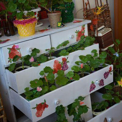 В рамках акции "Бабушкина герань" 88 социальных работников и 720 их подопечных плетут, вяжут, шьют, одним словам, мастерят для растений соответствующий декор. В Центре в ретро стиле оформили комнату отдыха для посетителей, которую украшают 104 кустика герани. Всего с апреля по май выращено 780 отростков растения, которое хорошо дезинфицирует воздух.
