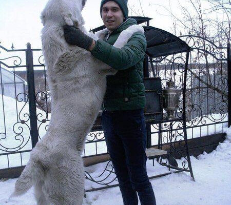 Владимир СЕВОСТЬЯНОВ прислал в редакцию фото среднеазиатской овчарки (алабая) по имени Малыш, которую за внешний вид часто называют "Белый медвежонок". "Малыш приехал к нам из Татищево, ему 3 года, преданный, очень ласковый и задорный пёс, но в тоже время грозный, — рассказывает хозяин. — Когда нужно, отличный охранник дома, любит купаться в речке, играть, грызть колесные покрышки, кататься на автомобиле. С легкостью может прокатить на своей широкой спине!"