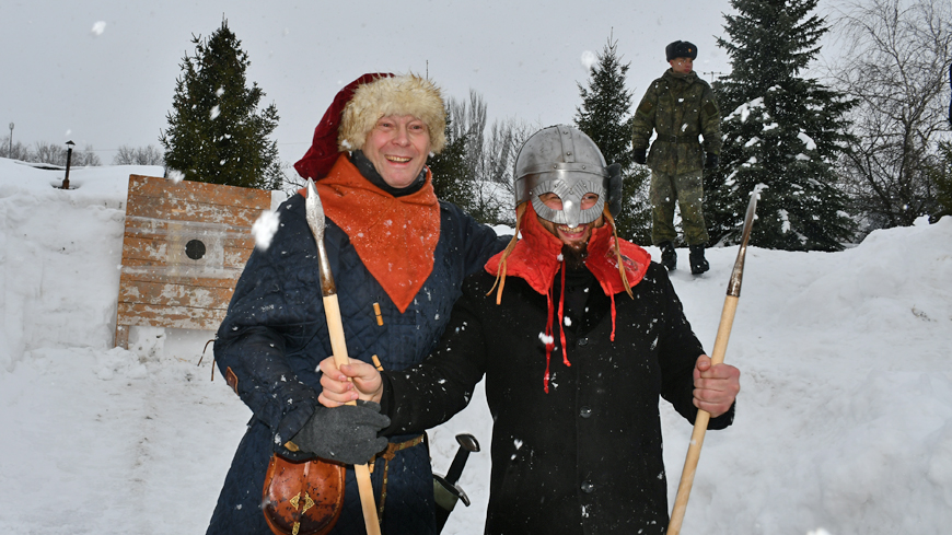 Сергей Уткин, руководитель клуба исторического фехтования «Стальное копье» провел «Турнир семи богатырей». Задача игроков – поразить мишень копьями, а затем следовало повторить то же самое, но уже в шлеме витязя. Копья летели с переменным успехом – в мишень, мимо, а иногда и в «яблочко».