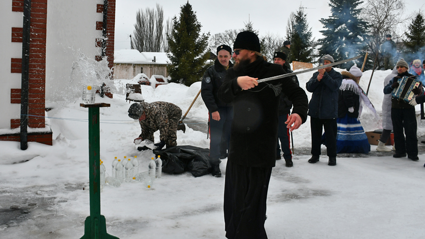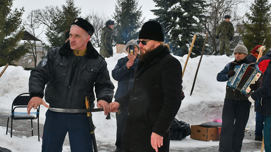 Самыми захватывающими моментами гуляний стали богатырские забавы. Аткарчане провожали овациями юных казаков – фланкировщиков, которые лихо рассекали воздух шашками, удивляя всех своим мастерством. Бравые казаки провели мастер-класс и учили гостей подворья рубить шашкой бутылки.