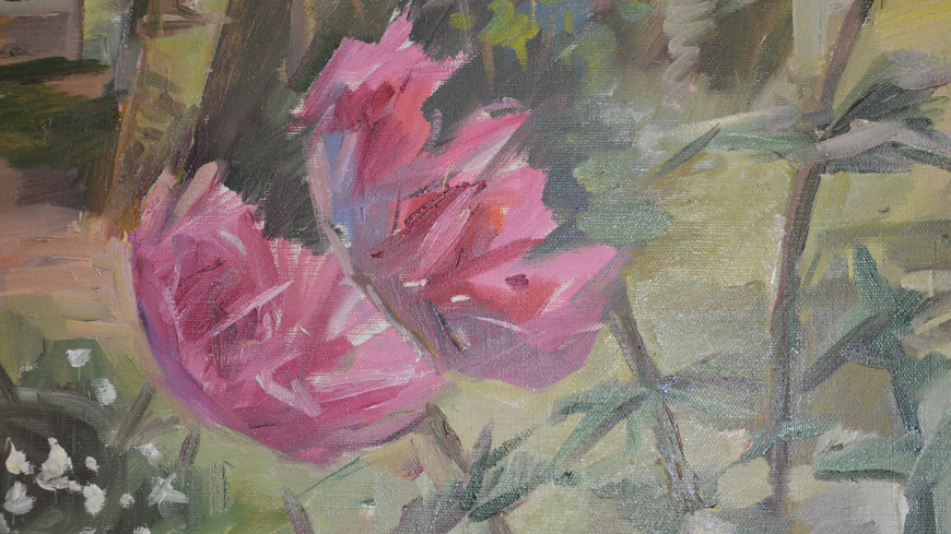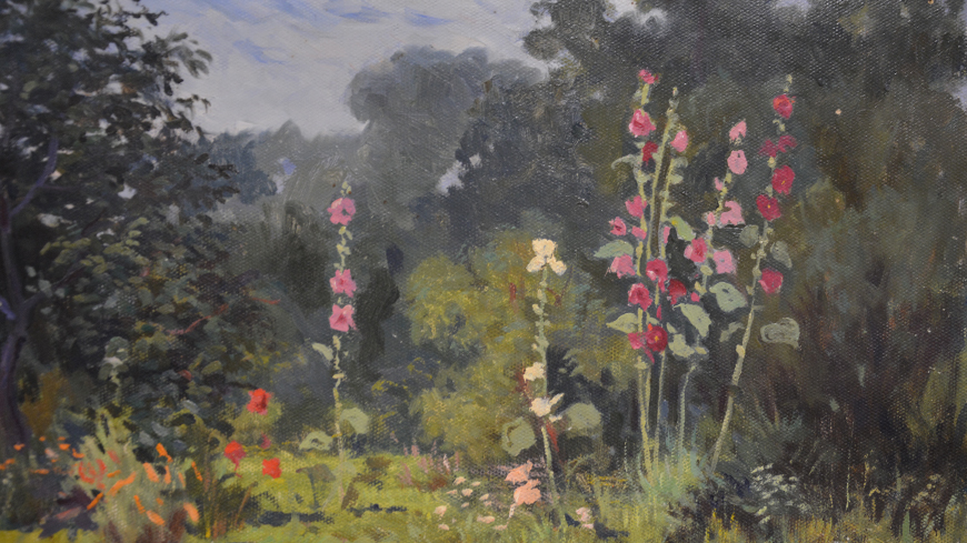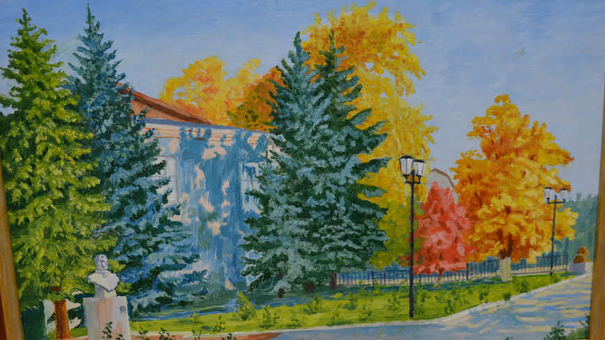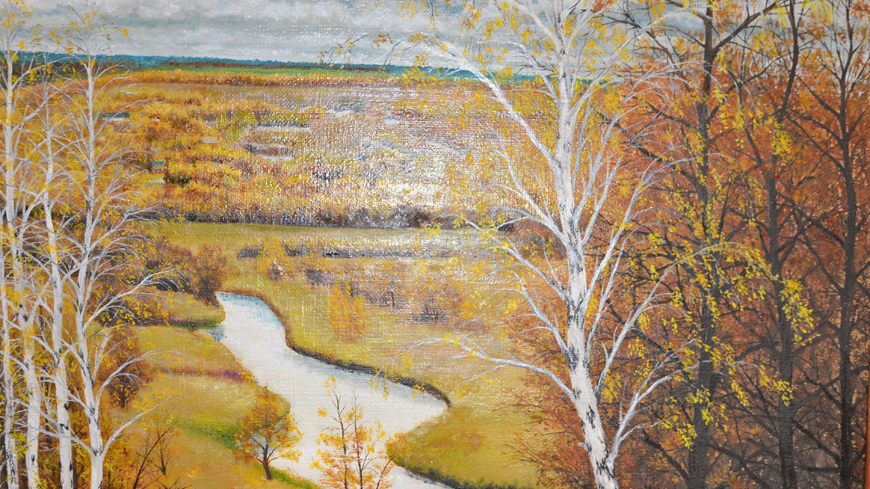 Густыми мазками педагог Детской школы искусств Анатолий Рыхтиков изобразил пышные георгины в саду. Гармонией зеленых оттенков привлекает взгляд полотно «Куткин пруд» Александра Кувенева. Одно из самых масштабных и ярких полотен на выставке — это картина Николая Мальгина «Осень в родной деревне», на которой он запечатлел стройные березки на фоне золотой осенней палитры. «Март на Медведице» — так назвал свою работу Иван Тимошенков. Акрилом, гуашью и акварелью изобразила изящные цветы Розалия Васильева. Уроженец Армении Рафаэл Манукян передал любовь к природе Аткарска в полотне «Закат», на котором яркий солнечный свет заливает просторы наших полей. Ноты осенней поры нашего края превратил в симфонию красок известный в Аткарске художник Сергей Ломовцев.
