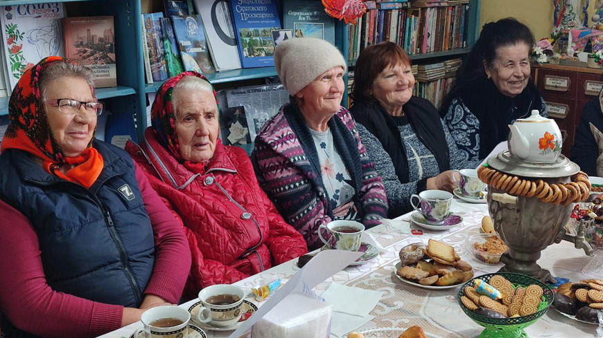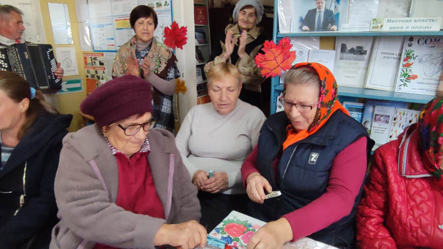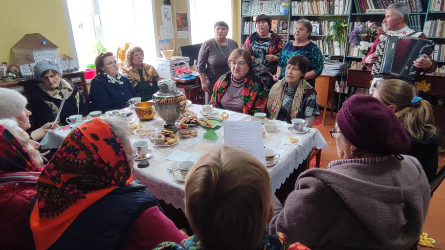 Затем гости мероприятия приняли активное участие в конкурсах и викторинах: «Собери урожай», «Составь пословицу», «Небылицы» и просто общались и пели любимые песни под аккомпанемент Александра Зайцева. Закончился праздник чаепитием со сладостями и вкусной выпечкой от активисток женсовета.