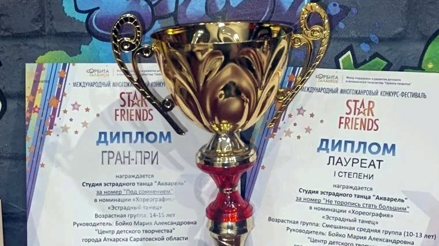 Международный многожанровый конкурс-фестиваль детского, юношеского и взрослого творчества «STAR FRIENDS» проходил в Саратовском областном центре народного творчества имени Лидии Руслановой. С успехом выступили на конкурсе эстрадные коллективы «Каскад» и «Акварель» Старшая группа студии эстрадного танца «Акварель» ( педагог Мария Бойко) с танцем «Под сомнением» стала обладателем Гран-при в номинации «эстрадный танец», а средняя группа «Акварели» с танцем «Не торопись стать большим» стала Лауреатами I степени.