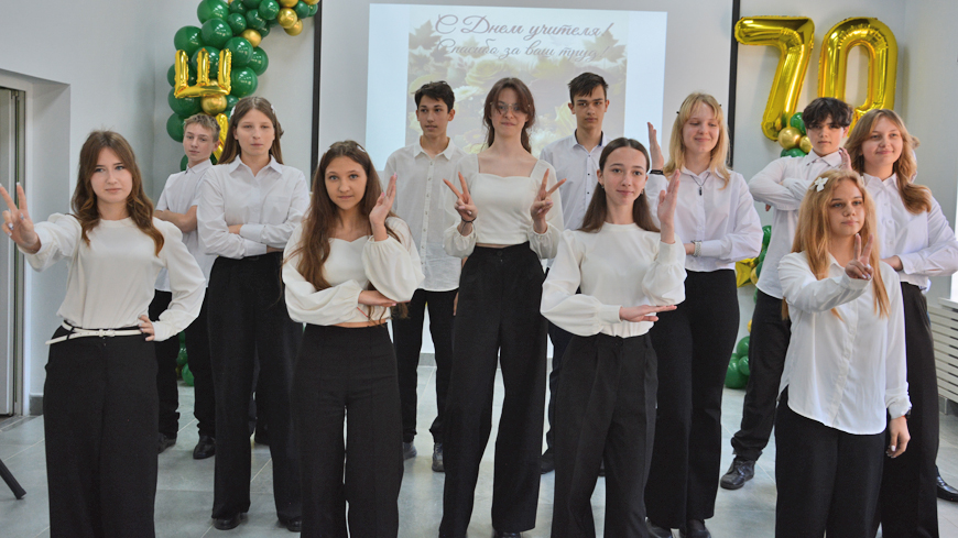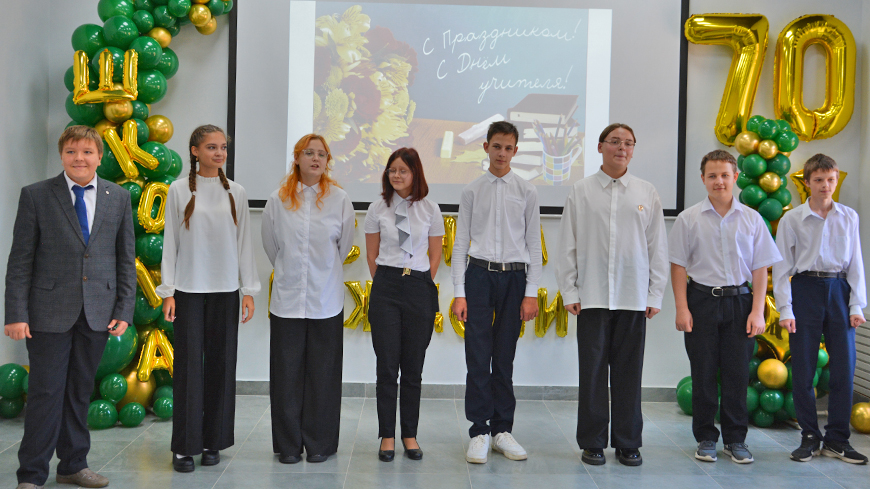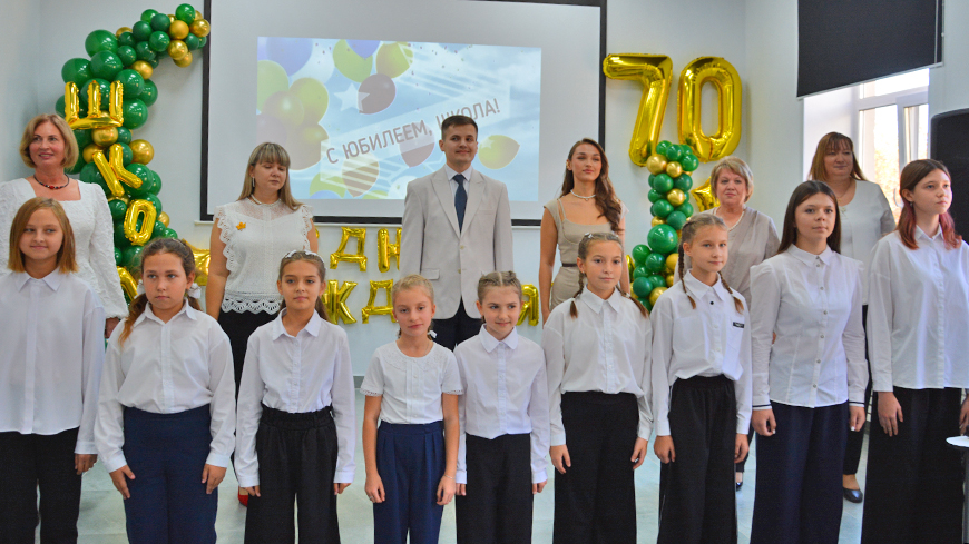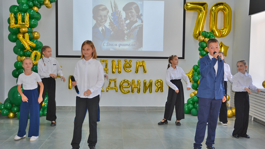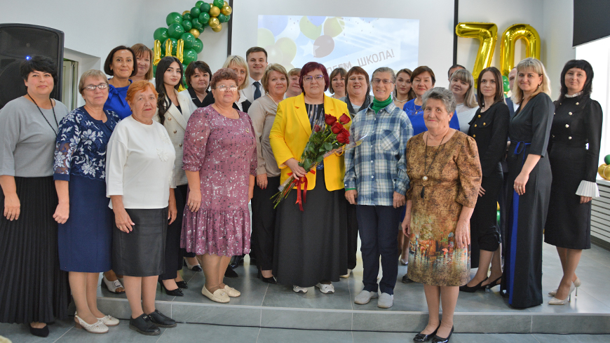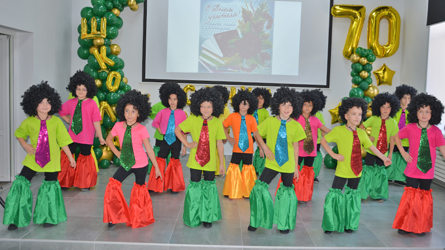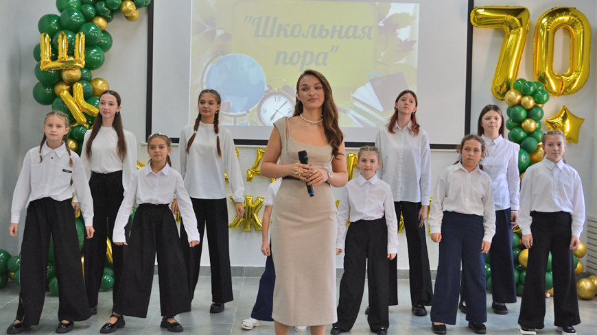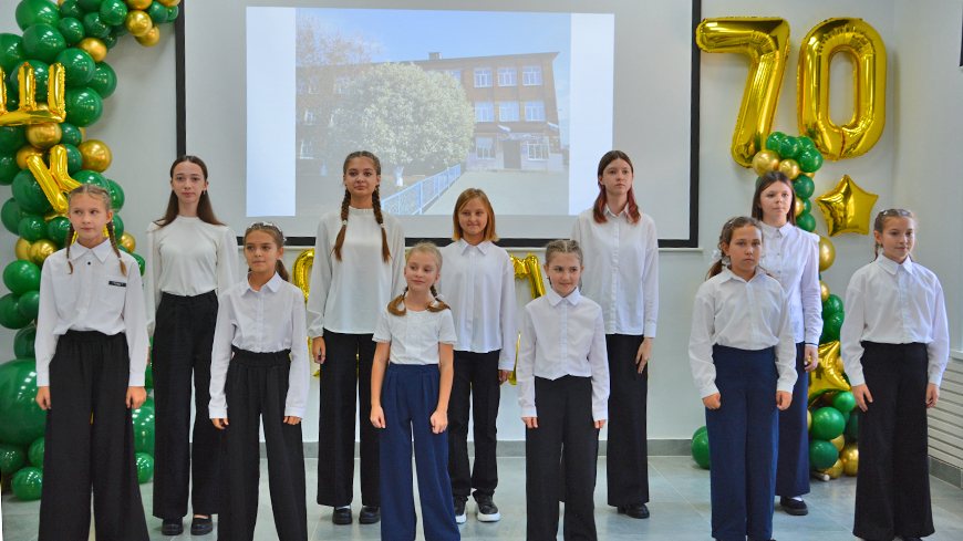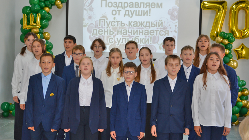 Семидесятилетие школы праздновали сегодня в сильном и современном актовом зале, ремонт зала стал подарком к юбилею от выпускника 1996 год главы района Виктора Елина. В школе отлично умеют создавать атмосферу семейного праздника, где уютно всем — и первоклассникам, молодым педагогам, и ветеранам.