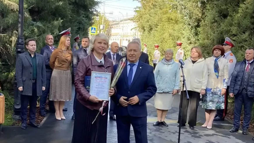 Сегодня в преддверии профессионального праздника педагогов в Саратове состоялось торжественное обновление Доски почета в сквере Первой учительницы. В этом году на почетную доску занесли 21 учителя. Среди них и наша землячка Оксана Сергеевна.