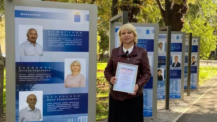 Учителя музыки школы №9 Аткарска Оксану Калинину занесли на Доску почета работников образования Саратовской области.