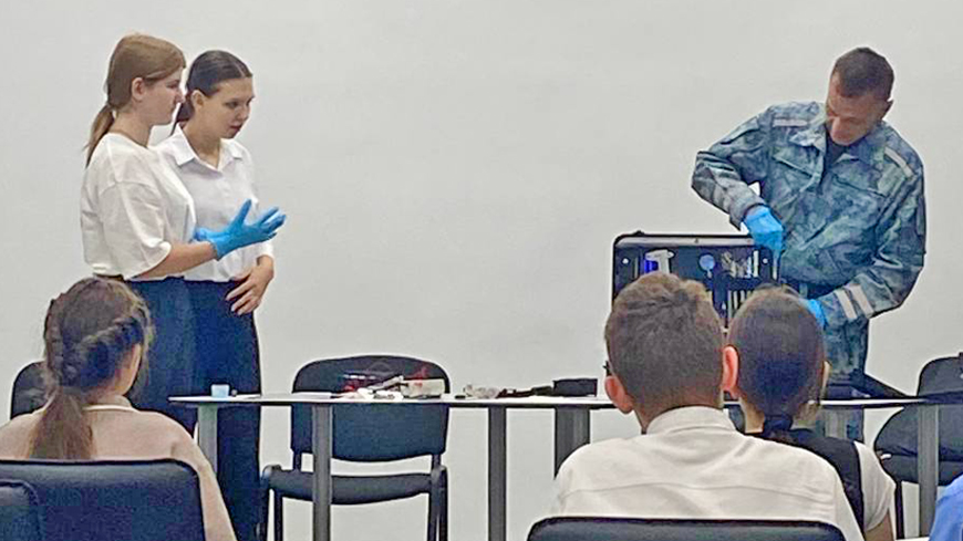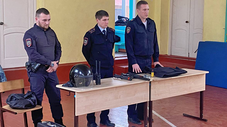 С профессией полицейского детей знакомят инструктор по профессиональной служебной и физической подготовке Антон Кулаков и инспектор по гражданской обороне и направлению мобилизационной подготовки и мобилизации Евгений Будко. Сотрудники рассказывают школьникам о преимуществах обучения в высших учебных заведениях МВД и службе в полиции, специальностях, буднях сотрудника полиции и где учат на полицейского.