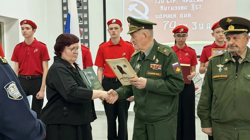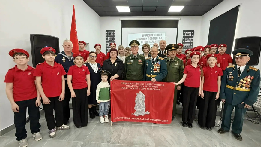 Юрий Константинович торжественно передал директору школы Алле Потаповой копию знамени на вечное хранение, свидетельство о вручении, а также «Книгу памяти Саратовской области». В глазах юных патриотов школы был восторг. Теперь знамя займет достойное место в школьном музее.