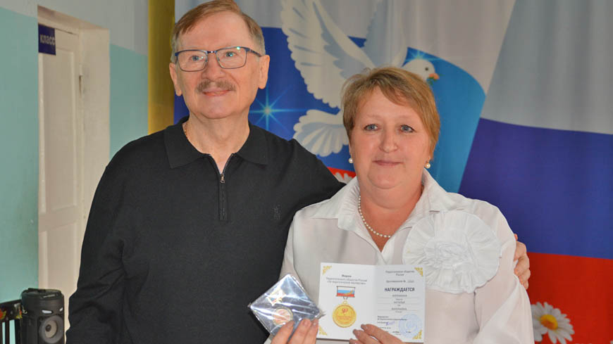 В конце мероприятия аткарских педагогов отметили наградами. Медаль «За педагогическое мастерство» Центрального совета педагогического общества России вручили директору школы №6 Наталье Капенкиной.