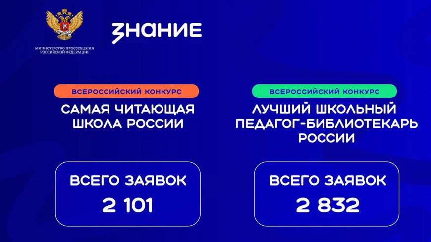 Российское общество «Знание» совместно с Министерством просвещения Российской Федерации подвело итоги заявочных этапов Всероссийского конкурса «Самая читающая школа России» и Всероссийского конкурса профессионального мастерства «Лучший школьный педагог-библиотекарь России». Конкурсы объединили 7529 сотрудников школ — это 4933 заявки из 89 российских регионов. В том числе 28 заявок поступило из Саратовской области.