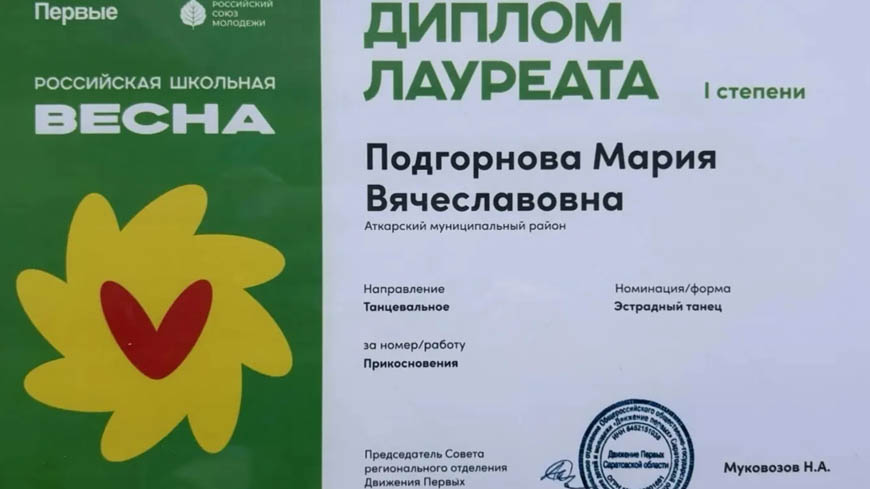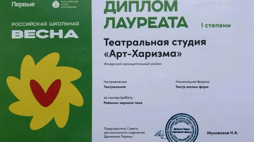 Театральный коллектив аткарской школы №10 «Арт-харизма» (руководитель Елена Агафонова) выступил на сцене саратовского Дворца творчества детей и молодежи имени Табакова. Ребята стали победителями областного этапа масштабного творческого проекта «Российская школьная весна». А среди танцоров первое место завоевала воспитанница Центра детского творчества, победительница конкурса «ЮТА-2025» Мария Подгорнова (руководитель Мария Бойко).