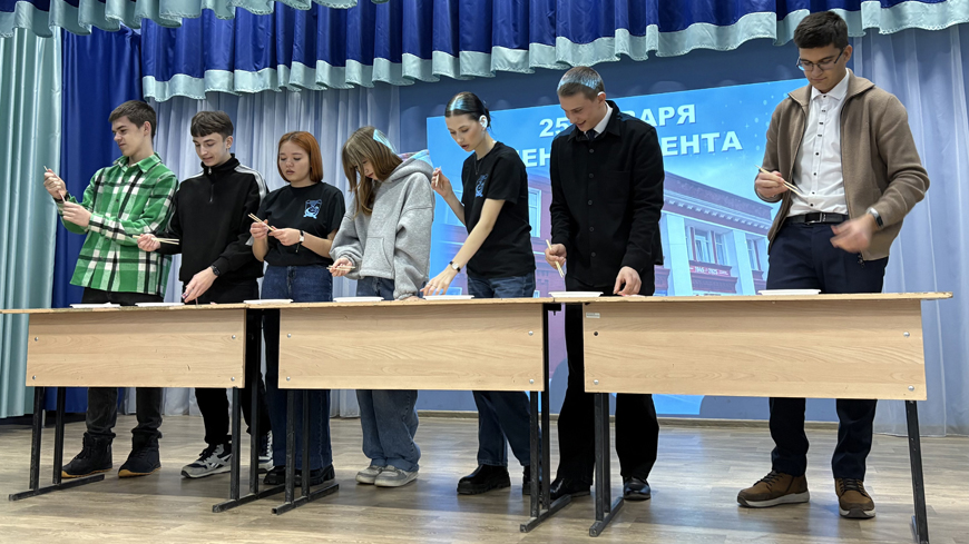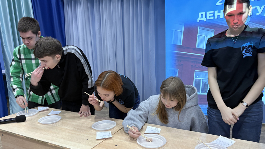 Денис Салыкин, Кирилл Швец, Калерия Петрова, Андрей Пучков, Сергей Сапожков, Матвей Уткин — активные студенты легко вжились в роль своих старших наставников. Поделилась впечатлениями студентка Полина Дементьева, которая учится на технолога. Ей выпала роль заместителя директора.