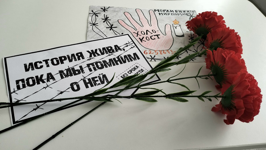 Советник директора по воспитанию Наталья Власова рассказала школьникам о трагических событиях тех лет: ребята узнали о зверствах нацистов, о массовых расстрелах, концлагерях, голоде и болезнях, которые стали следствием оккупационного режима.