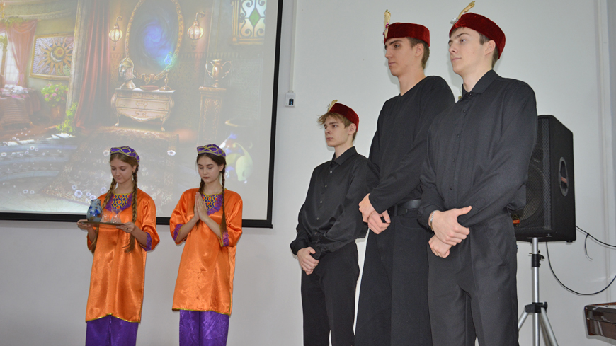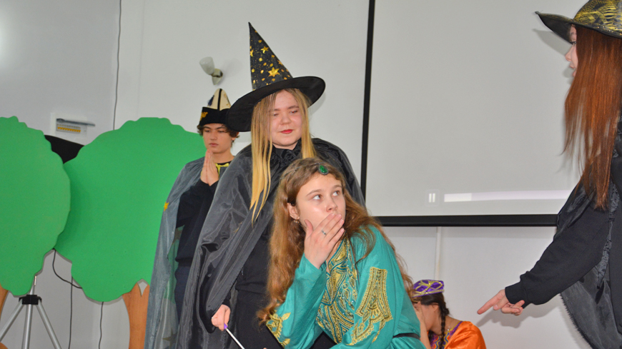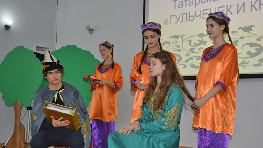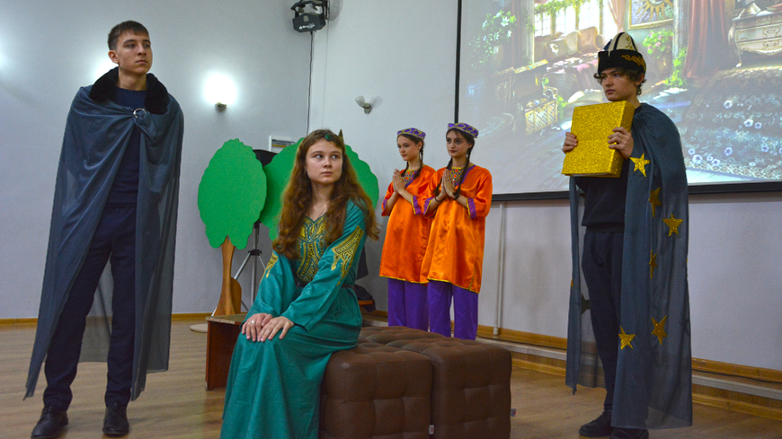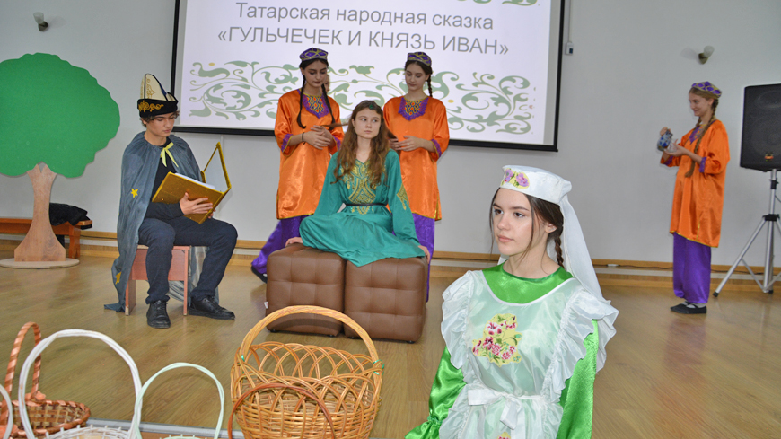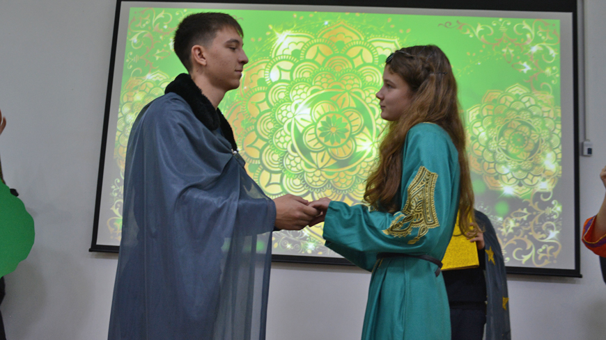 Красотой и ярким колоритом восточных костюмов удивили десятиклассники. Они показали постановку «Гульчечек и князь Иван» по мотивам татарской сказки. Прекрасную девушку Гульчечек похищают коварные ведьмы. Ни мудрость звездочета, ни решимость родных братьев не помогли спасти красавицу. И лишь любовь помогла разрушить страшные чары – юный князь Иван смог вызволить Гульчечек, связав с ней навеки свою судьбу.