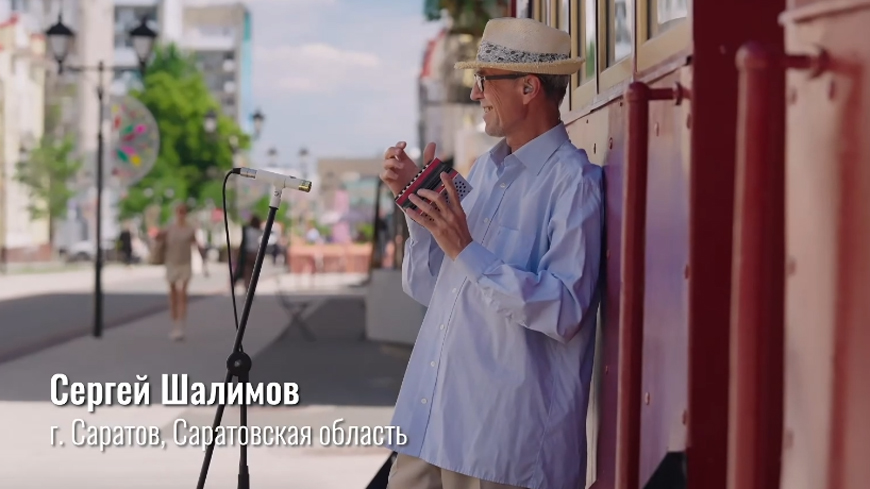 Открыл новый клип партией на гармошке музыкант Сергей Шалимов. Он исполнил свой фрагмент композиции на ул. Волжской на фоне трамвая «Семен». Еще одним саратовцем, принявшим участие в съемках, стал артист Филармонии Али Закилов .