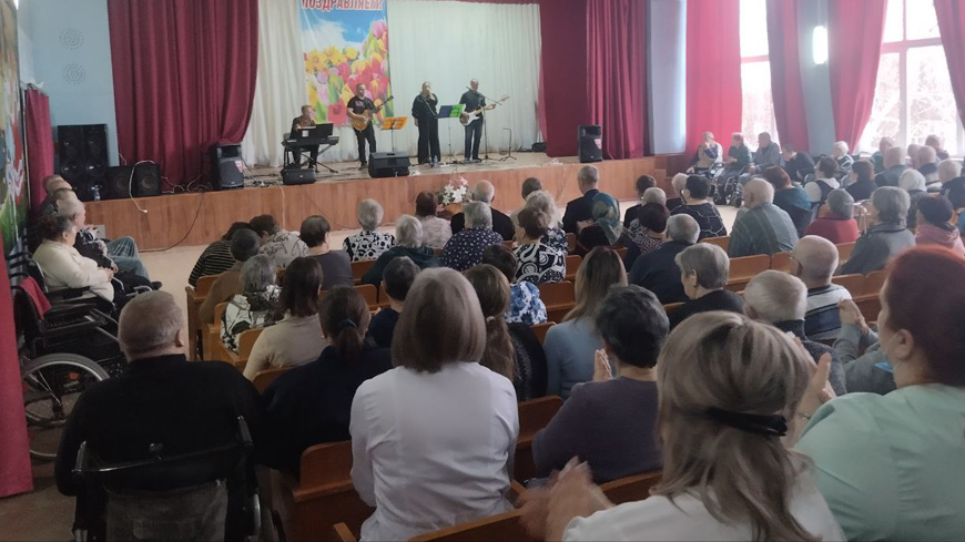 Гости посетили все отделения учреждения и пообщались с проживающими. Музыкальное настроение зрителям подарила группа «Рок-фестиваль» и вокалистка Екатерина Новикова, выступив с концертом.