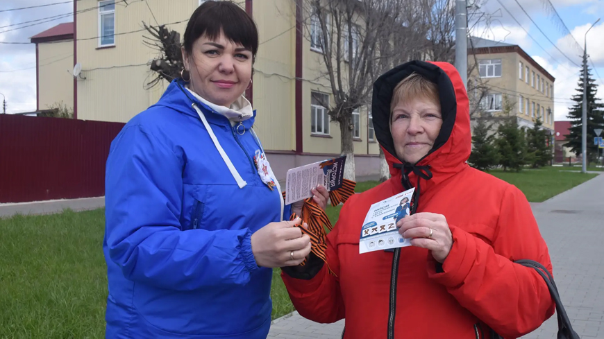 Специалисты Аткарского КЦСОН вместе со студентами политехнического колледжа вышли на улицы родного города и вручили аткарчанам георгиевскую ленту — один из главных символов Великой Победы.