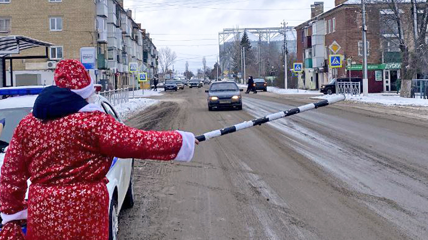 Акция «Полицейский дед мороз!» была проведена сотрудниками отделения Госавтоинспекции отдела МВД России по Аткарскому району Саратовской области совместно с представителями СМИ газета «Аткарская газета», преподавателями МОУ СОШ № 2 г. Аткарска и представителем общественного совета при ОМВД России по Аткарскому району Саратовской области в ходе профилактического мероприятия «Внимание, зимние каникулы!».