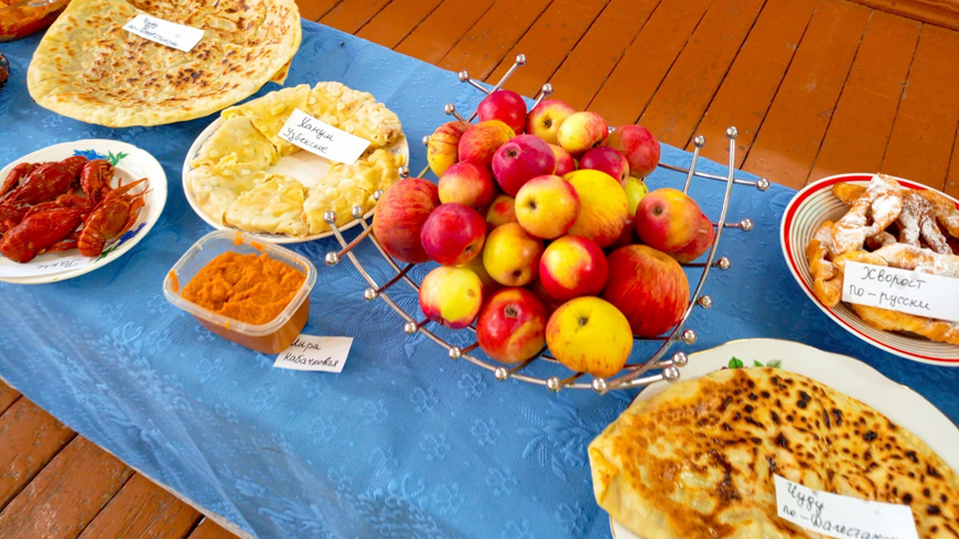 Эти блюда стали символом дружбы и взаимопонимания, объединяя гостей праздника в атмосфере тепла и доброты. К общему столу хозяюшки подали блюда кухонь народов нашей страны — русской, белорусской, лезгинской, молдавской, чеченской, адыгейской, татарской, узбекской…