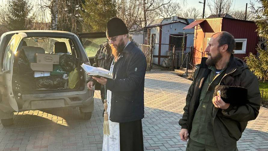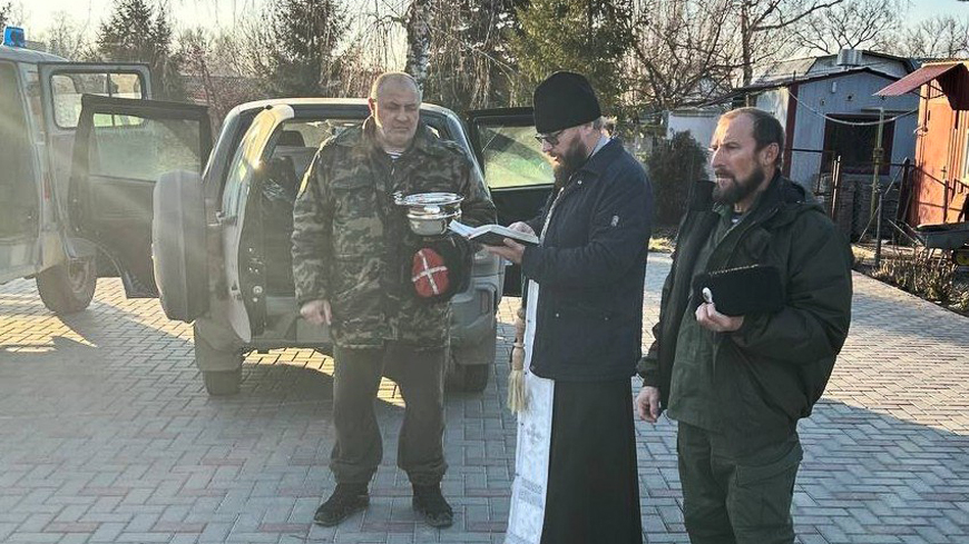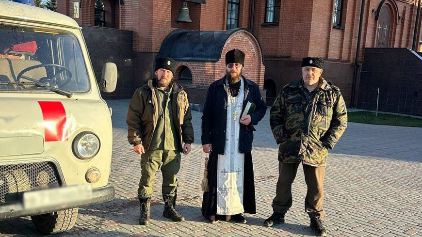 Перед отправкой в зону СВО машину освятил благочинный Аткарского округа, иерей Роман Болотнов. «УАЗ» на передовую доставил атаман казаков Александр Хализов.
