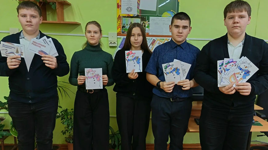 Родители вместе с детьми готовят посылки для раненых бойцов, которые находятся на лечении в одном из госпиталей Саратовской области. Воспитанники детского сада «Сказка» и сельские школьники своими руками сделали новогодние открытки бойцам.