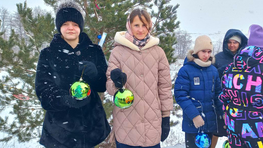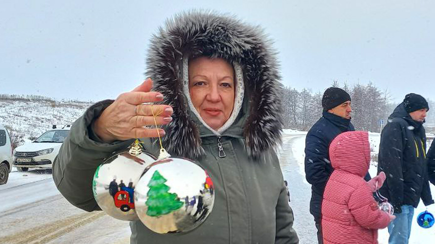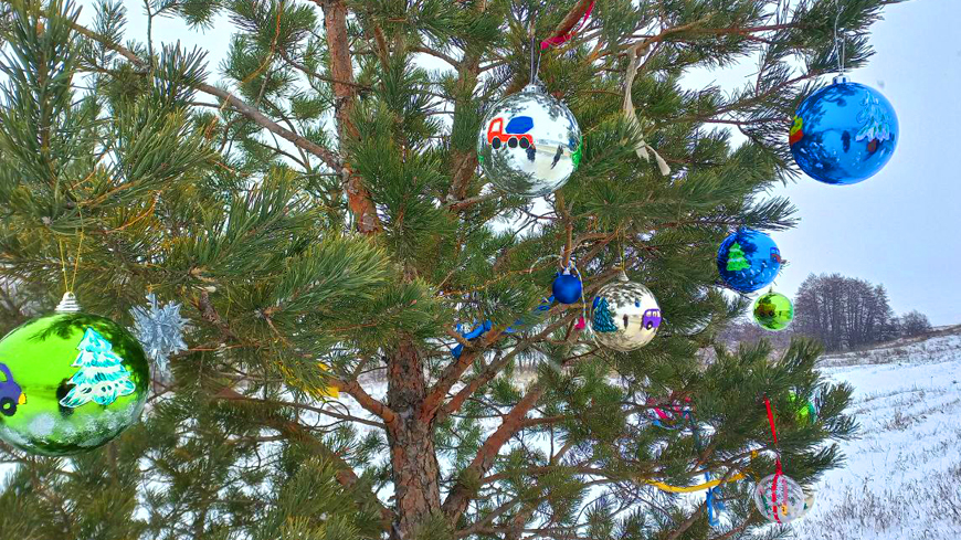 Накануне ученики Озерной школы и их родители расписывали сверкающие елочные шары рисунками дорожной техники. На шариках можно увидеть тракторы, бульдозеры, экскаваторы, бетономешалки — капитальный ремонт сельской трассы стал знаковым событием для жителей Озерного МО. Созданные своими руками игрушки дети и взрослые дружно повесили на ветки вечнозеленой красавицы, а Марина Богданова из Малой Осиновки украсила дерево гирляндой на солнечных батарейках.