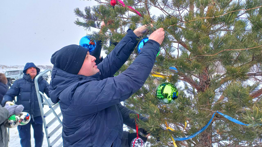 Жители сел Озерное и Малая Осиновка нарядили сосну, которая выросла на обочине автодороги Аткарск — Озерное и стала символом Нового года.