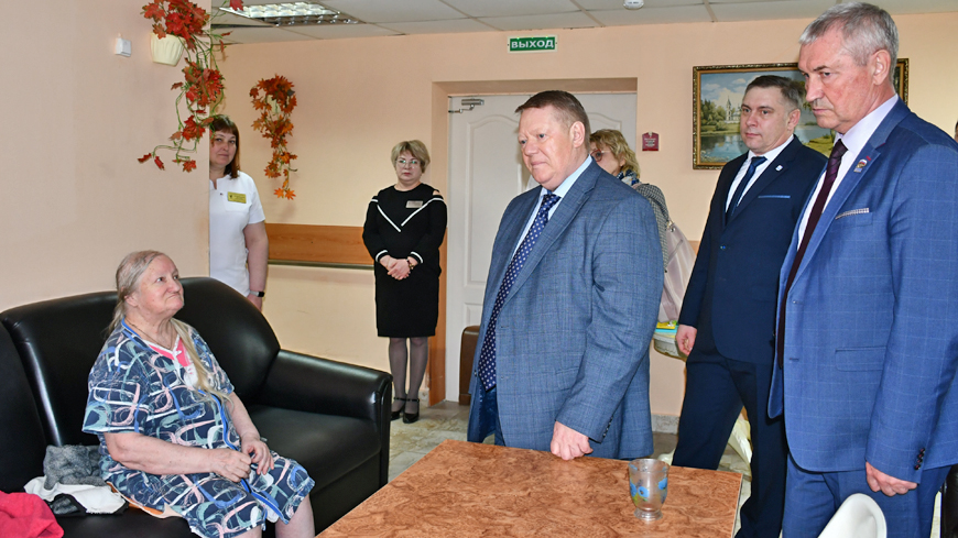 Депутат осмотрел отделения, актовый зал, столовую, познакомился с проживающими, узнал, как они проводят свой досуг. Например, в день визита в «Клубе по интересам» проживающие пели любимые песни вместе с вокалисткой Еленой Белолипцевой и поздравляли с 76-летием Наталью Порошину. К поздравлениям присоединился и депутат.