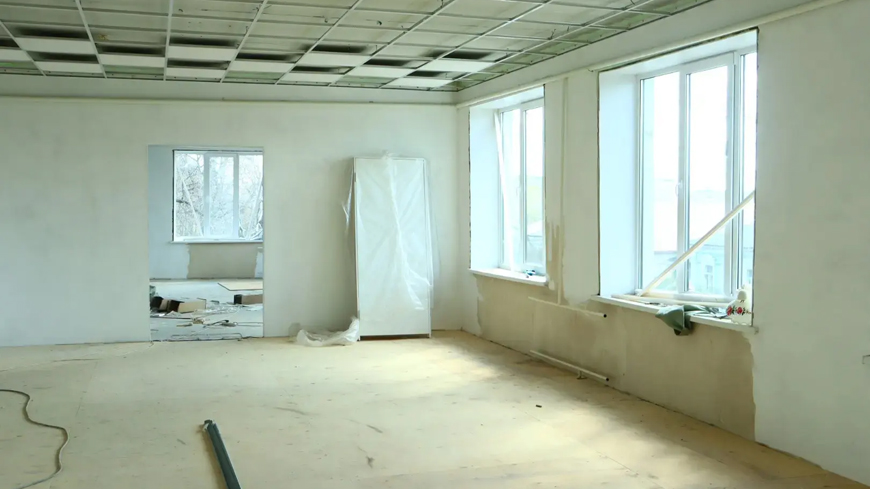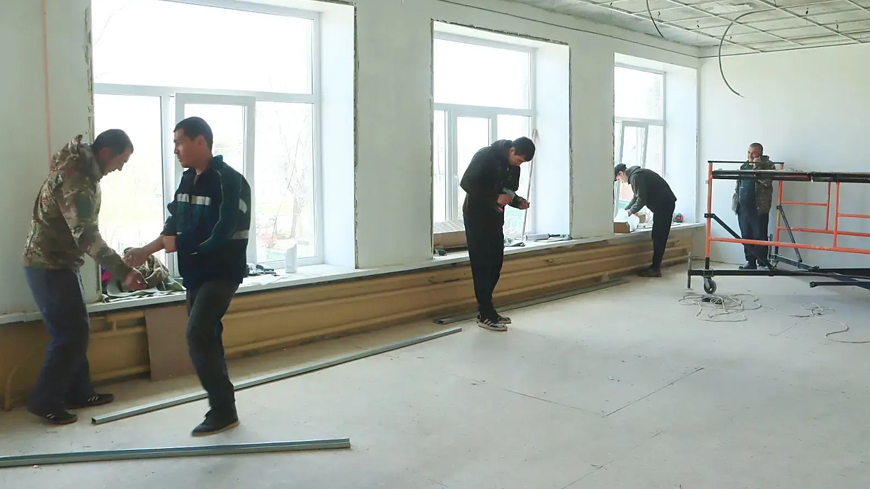 Готовится к обновлению и здание будущей модельной библиотеки. Здесь провели перепланировку помещений, теперь они просторные и светлые. Рабочие проводят штукатурку, шпаклевку стен. Также в библиотеке заменят потолки, установят новые двери. Для библиотеки закупили мебель и новые книги.