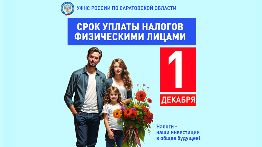 1 декабря 2025 года истекает срок исполнения налоговых уведомлений об уплате имущественных налогов граждан и налога на доходы физических лиц, не удержанного налоговым агентом, — напоминает Межрайонная ИФНС России №12 по Саратовской области.