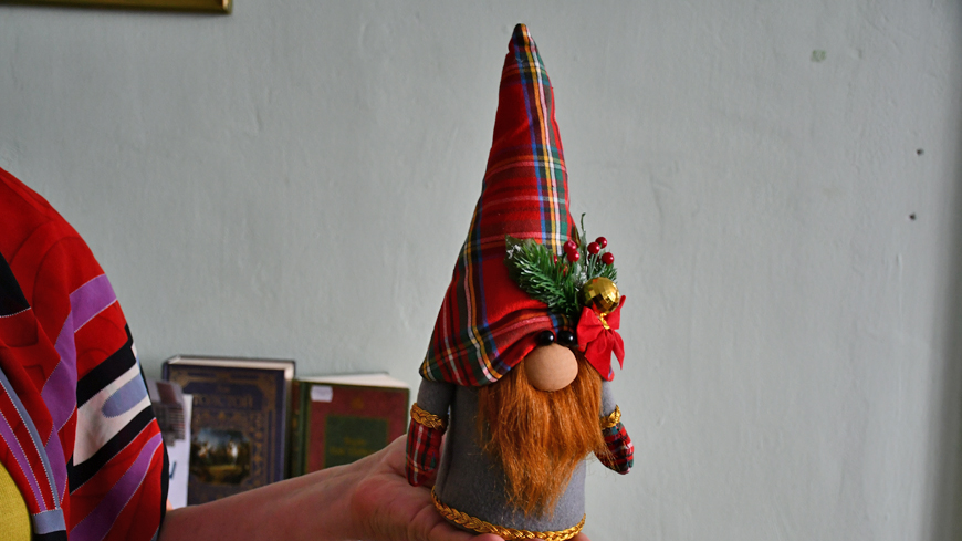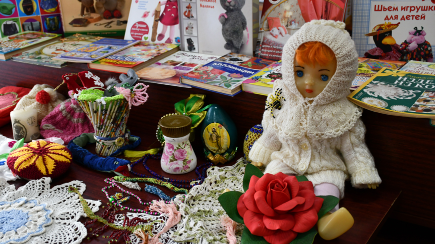 В преддверии своего праздника рукодельницы развернули в библиотеке выставку разных поделок. Например, Ольга Андриянова изготавливает изящных гномиков из фетра, ткани, гарнитуры и тесьмы. Есть среди ее поделок и еловые игрушки, которыми на Новый год она украшает праздничную ель. Ольга Юрьевна давно мечтала мастерить куклы, а 15 лет назад, уйдя на пенсию, она воплотила мечту в реальность.