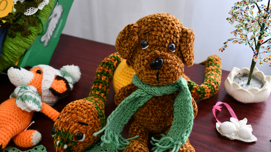 Плюшевые щенки и мышата от Людмилы Галкиной стали особым украшением выставки.