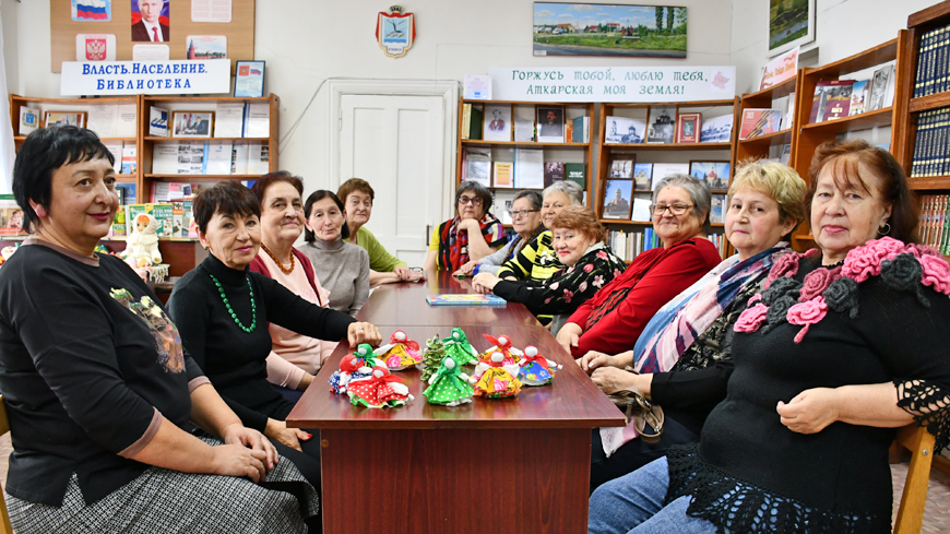Коллектив мастериц в основном состоит из пенсионерок. Их клубу исполнилось 15 лет, а раз в месяц его участницы собираются в библиотеке и участвуют в мастер-классах. Сегодня под руководством мастерицы Людмилы Галкиной наши умелицы изготовили из ткани пестрых кукол-берегинь. Такие куклы считаются оберегами. Иногда их называют столбушками – это из-за специального маленького рулона ткани, который служит основой куклы. Очаровательные красавицы словно гостьи из сказок собрались в хоровод вокруг ватной елки, которую изготовила известная аткарская поэтесса Тамара Порышева. Мастерицы отметили, что такие куклы лучше хранить возле сердца.