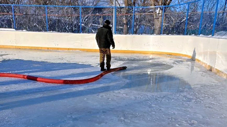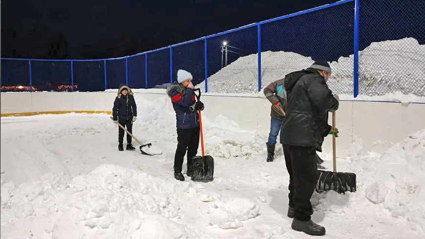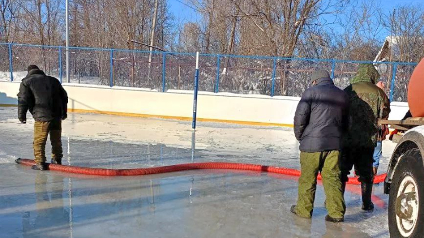 В Елизаветино подготовка к заливке катка началась еще осенью. А несколько дней назад, накануне крепких морозов, жители расчистили в коробке снег и начали наращивать лед.