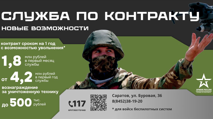 Подробнее узнать о службе по контракту можно обратившись в пункт отбора: г. Саратов, ул. Буровая, д. 36. Подробнее по номеру: 8 (8452) 38-19-20 или 117.