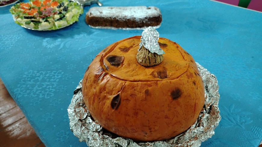 Утро праздничного дня началось с ярких выставок, на которых представили ароматные пироги и булочки, приготовленные руками талантливых хозяек, блюда из тыквы – оригинальные кулинарные шедевры, удивившие гостей своей оригинальностью; вязаные вещи от мастериц, игрушки из ваты – нежные и трогательные фигурки, созданные с любовью.