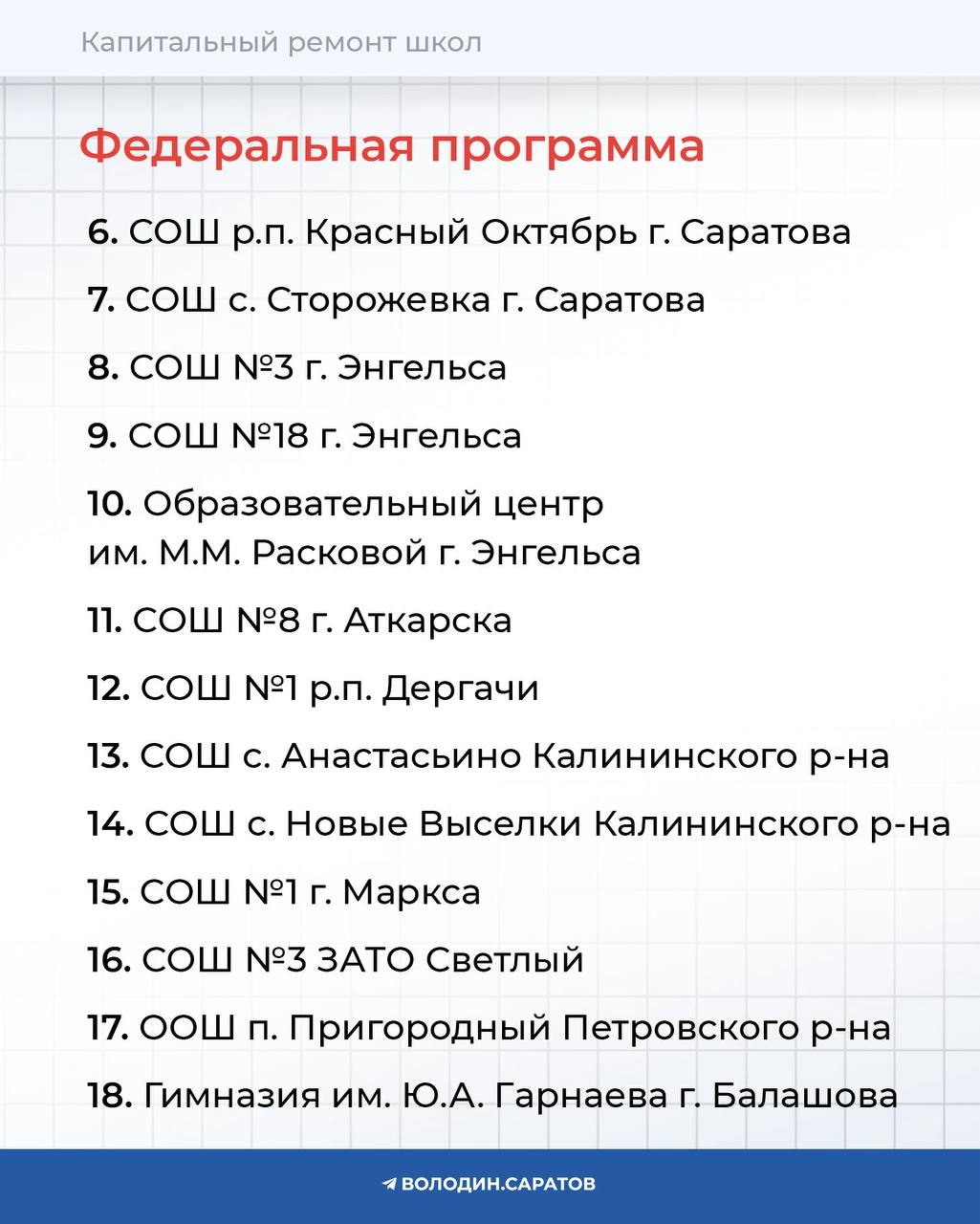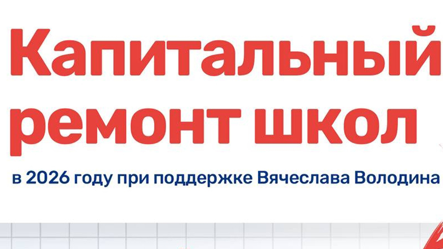 Сегодня Государственной Думой принят федеральный бюджет. Стал известен перечень образовательных учреждений области, которые будут капитально отремонтированы в 2026 году, при поддержке председателя Государственной Думы Вячеслава Володина, в рамках депутатского проекта и федеральной программы.