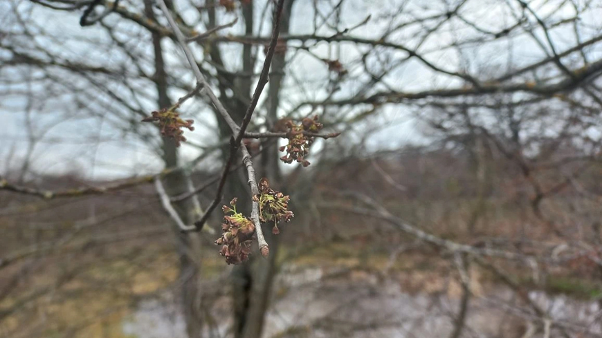 Ясенелистный клен уже вступил в фазу активного сокодвижения и начал распускать листоносные почки — это говорит о том, что дерево полностью готово к вегетации. Ветроопыляемые растения (верба, ветла и вяз) пошли другим путем: они распустили цветоносные почки, чтобы успеть опылиться до появления листьев. Черемуха пока находится в стадии подготовки к цветению — ее почки заметно набухли, но еще не раскрылись.