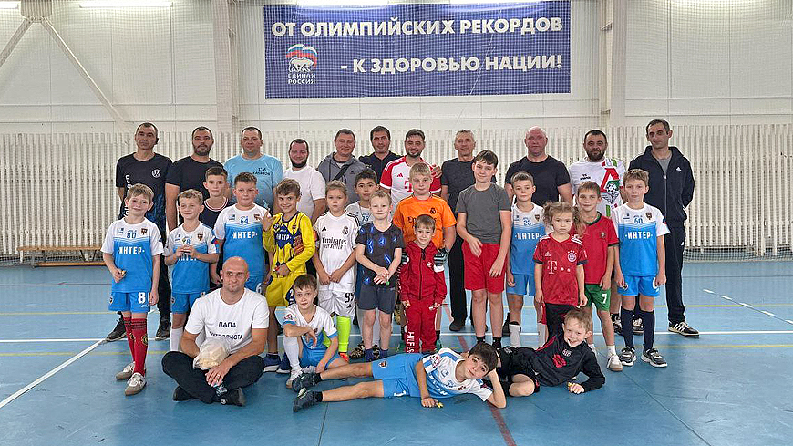 В воскресенье, в День отца, в ФОКе «Дельфин» прошел товарищеский матч – на поле встретились воспитанники футбольной секции «Интер» и команда пап. Главной наградой был сладкий «кубок».