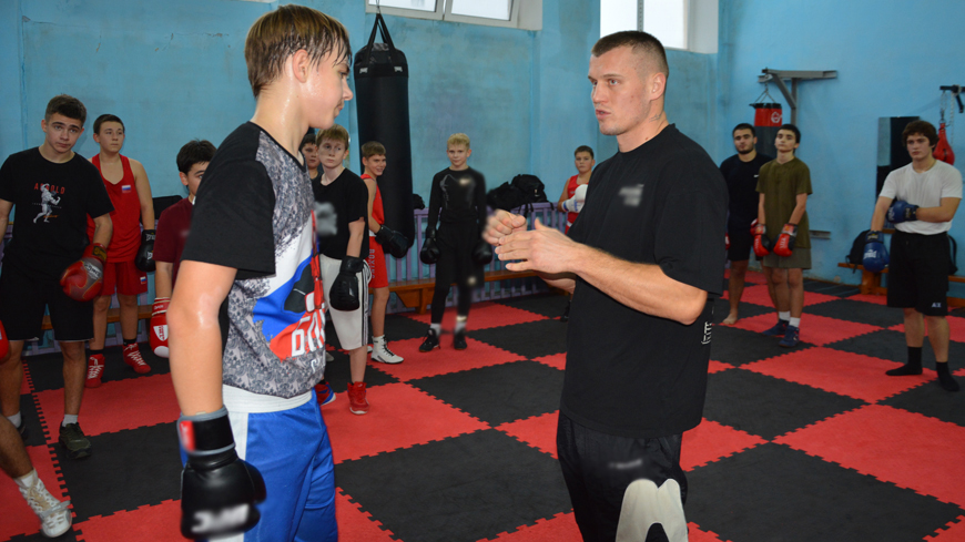 На встречу с профессиональным спортсменом пришли участники секции бокса, которых тренирует наш земляк Вадим Филимонов.