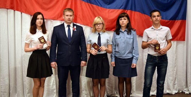 Традиционно в День России глава администрации вручил паспорта юношам и девушкам, достигшим 14-летнего возраста. Полноправными гражданами нашей страны стали Анастасия ТУДАКОВА ученица школы №1, Карина САВЕЛЬЕВА ученица школы №8 и Камран ИБРАГИМОВ ученик Елизаветинской школы.