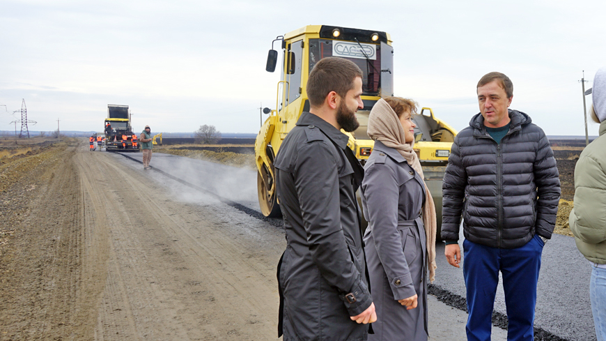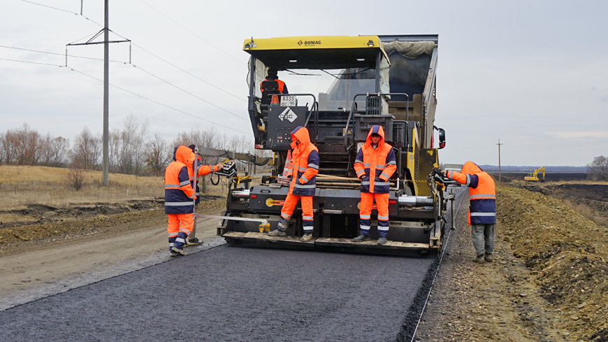 Протяженность дороги — 23 километра. В этом году на участке длиной 8 километров выполнено устройство АГБ-слоя (асфальтогранулобетона). Сейчас дорожники укладывают выравнивающий слой асфальтобетона. По окончании этих работ уложат второй слой — верхний. Подрядчик планирует завершить работы в этом году.